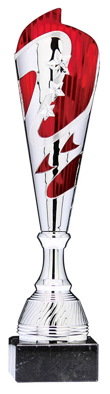 PLASTIC HARMONY SILVER/RED CUP ON MARBLE BASE TROPHY